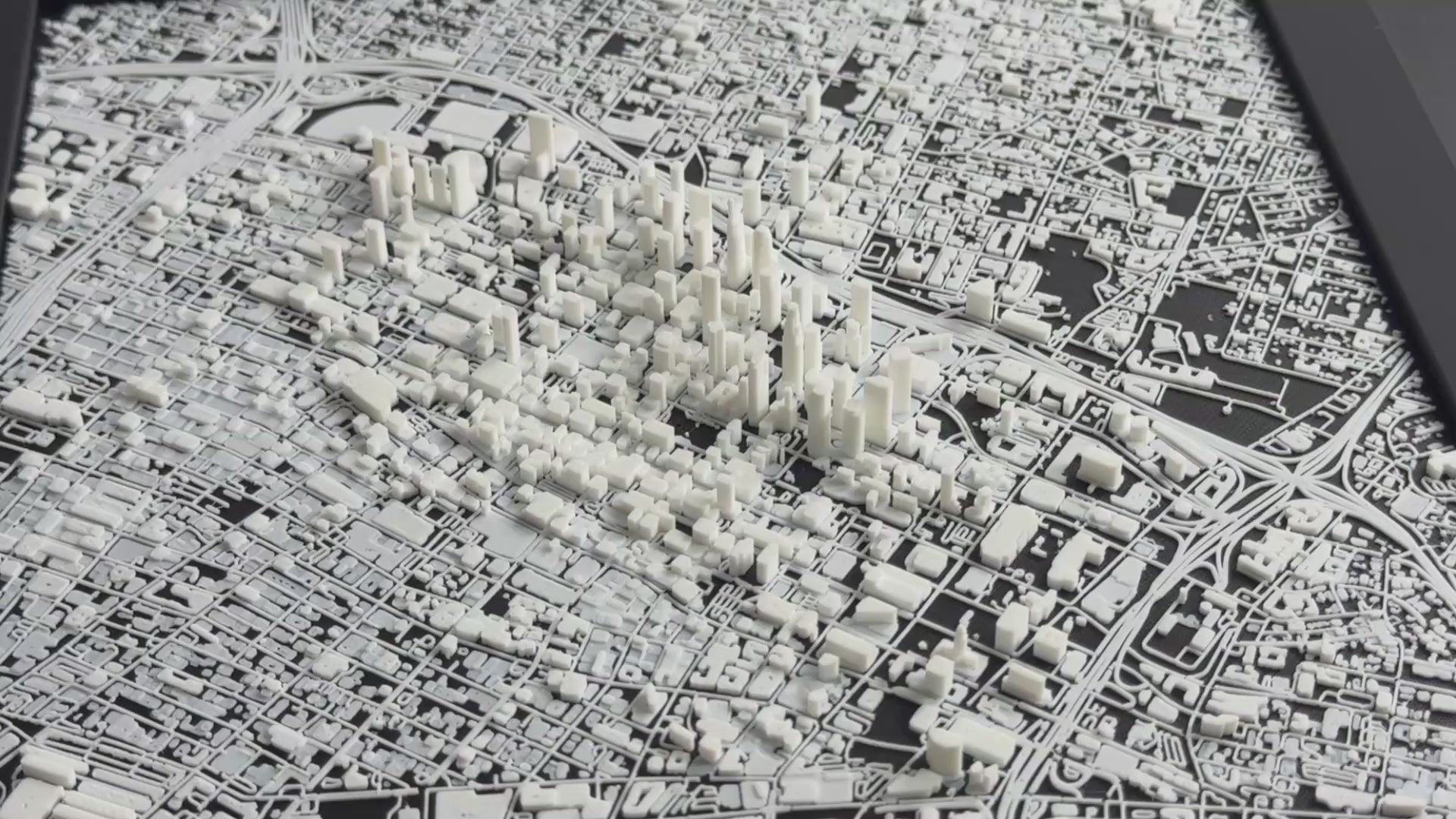 Highly-detailed 1:20,000 scale replica of Los Angeles. Featuring iconic landmarks like LA City Hall, the Wilshire Grand Center, and Crypto.com Arena (Staples Center). Modeled by combining open-source data with hundreds of hours of manual 3D modeling. 3D printed in hundreds of layers thinner than a sheet of paper.