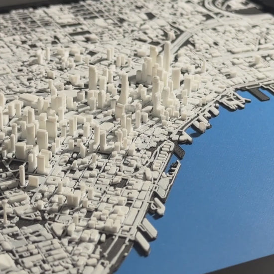 Highly-detailed 1:20,000 scale replica of Seattle. Featuring iconic landmarks like Pike Place Market, Lumen Field, and the Columbia Center. Modeled by combining open-source data with hundreds of hours of manual 3D modeling. 3D printed in hundreds of layers thinner than a sheet of paper.